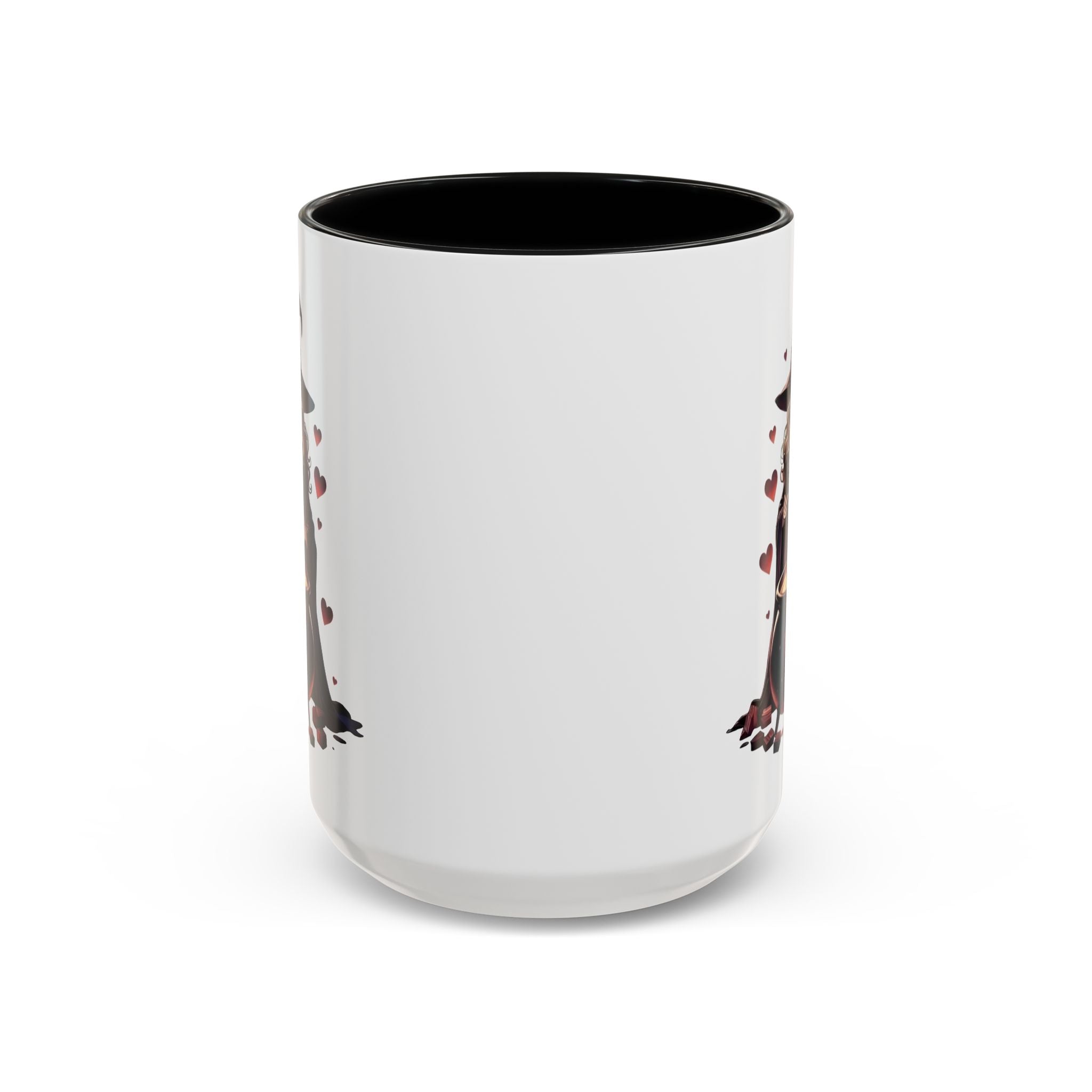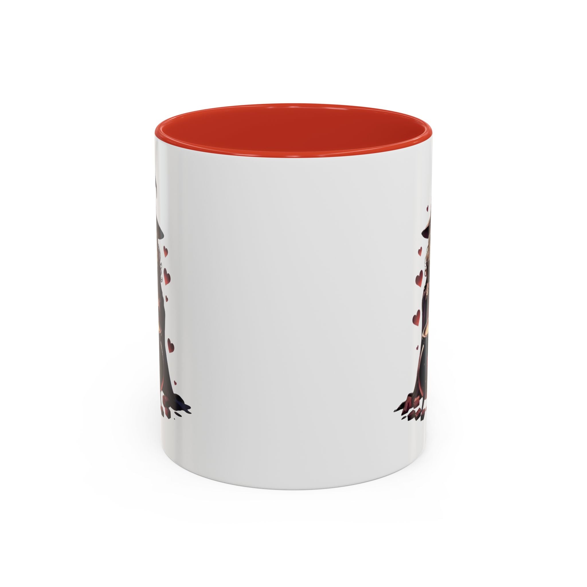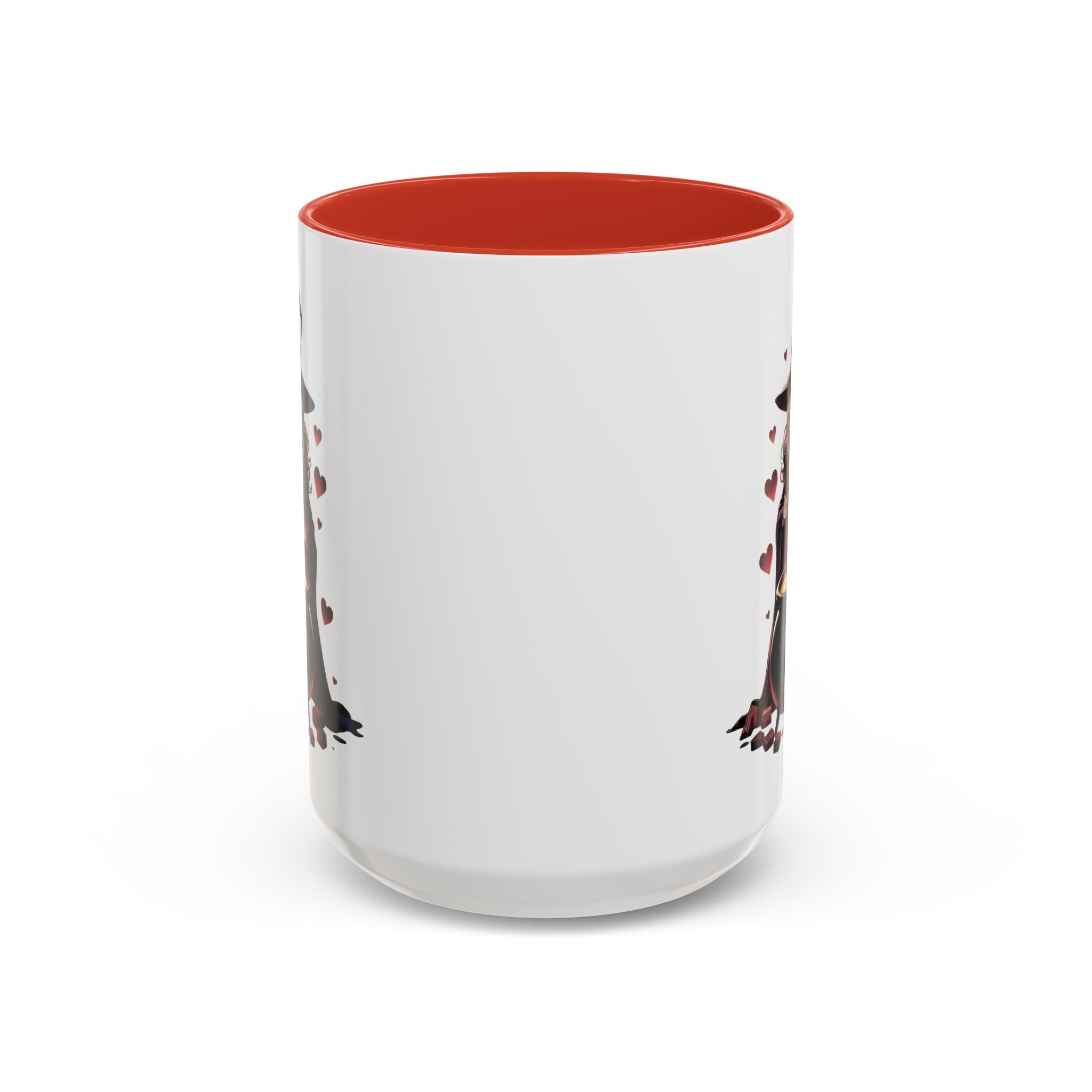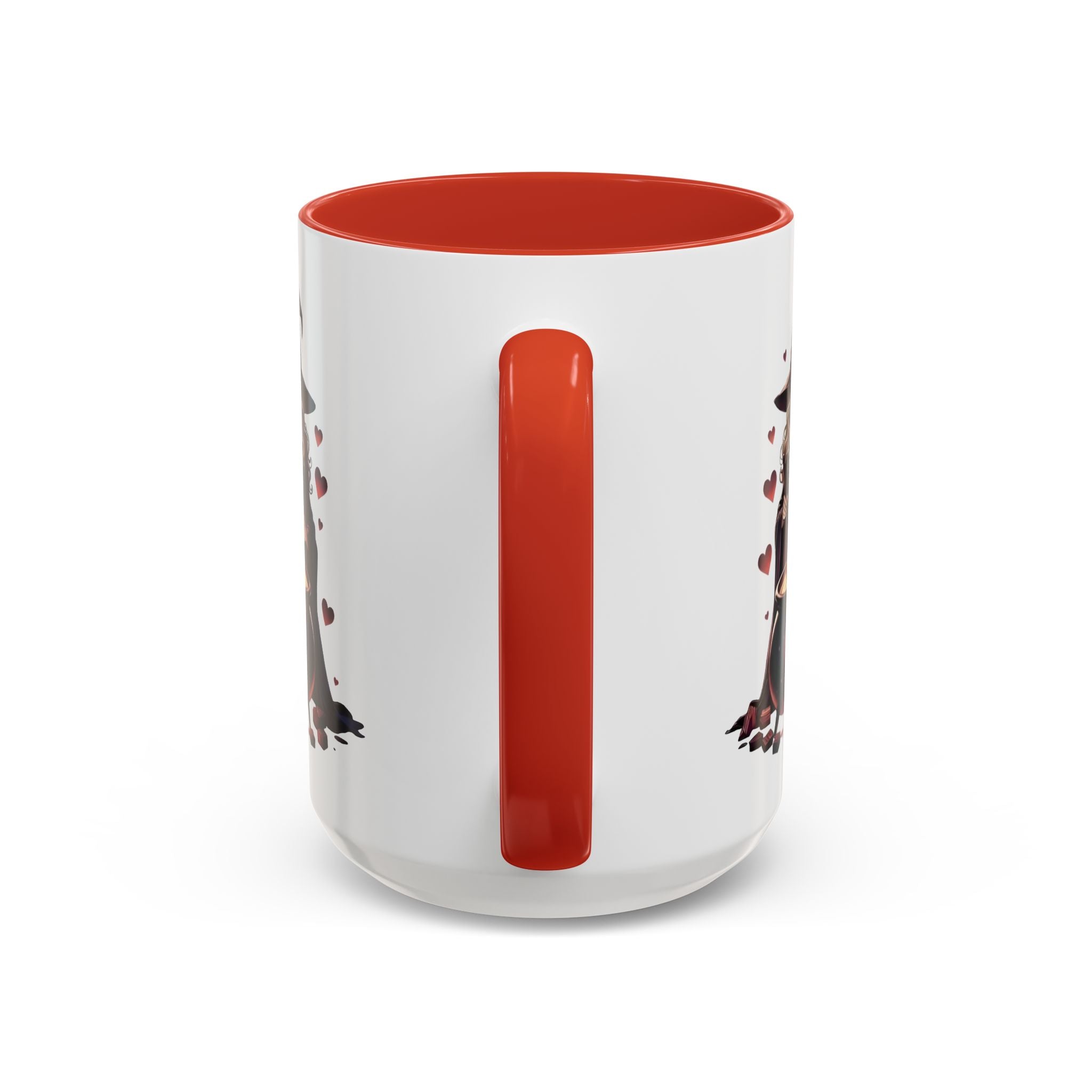 Warmth in every sip. This glossy ceramic mug pairs a vivid, witchy illustration with a bold colored interior and handle — a little cauldron of comfort for slow mornings and late-night brews. The artwork shows a beautiful spellcaster stirring a heart-emblazoned potion, surrounded by floating hearts. It brings a soft, whimsical energy to a cluttered desk, an apartment kitchen, or a window seat where ritual and routine meet. Lightweight enough for daily use, yet bright and sturdy enough to stand out in a collection. Whether it’s early-morning routines, quiet crafting nights, or a shared ritual of tea with a friend, this mug feels like a small charm you reach for when you want to settle in and savor the moment.